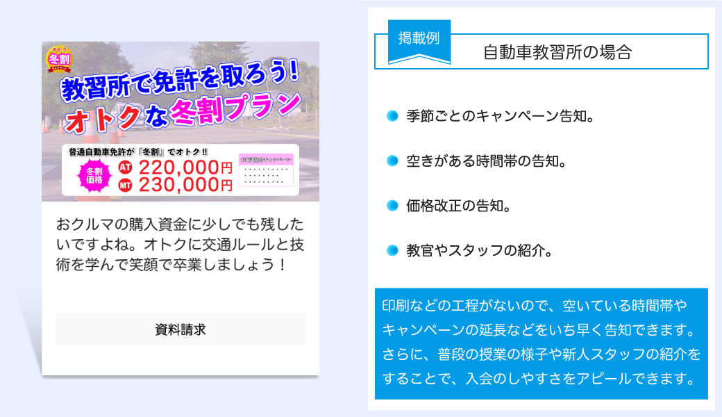 ・特売日や売れ残りの目立つ商品を急遽タイムセールしたい時の告知。