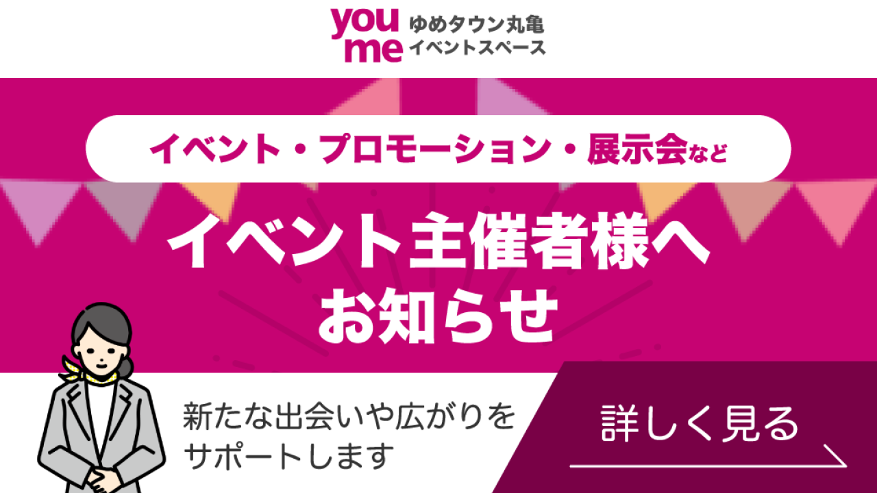 ゆめタウン丸亀店ではイベント・プロモーション・展示会など、さまざまな用途にご利用いただけるスペースをご用意しています